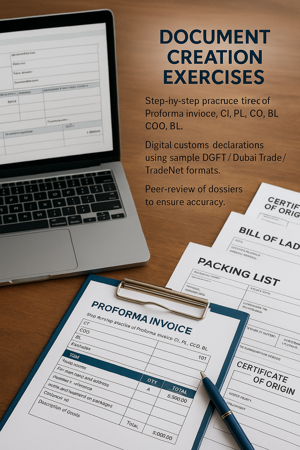 Participants will be able to independently prepare a complete set of international trade documents — including Proforma Invoice, Commercial Invoice, Packing List, Certificate of Origin, and Bill of Lading — with 95%+ accuracy.