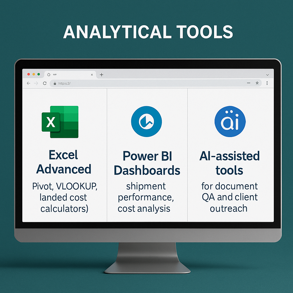 Excel Advanced (Pivot, VLOOKUP, landed cost calculators).